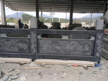 黑色石材护栏 带图案雕刻的护栏板